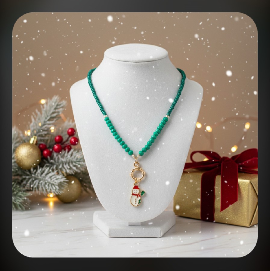 Mine uçlu, kristal boncuklu ve altın rengi metal detaylı kolye sayesinde soğuk kış günlerinde neşeniz hiç kesilmeyecek⭐